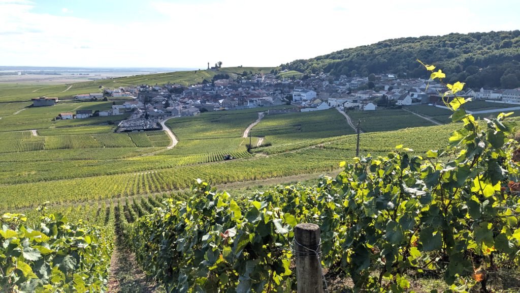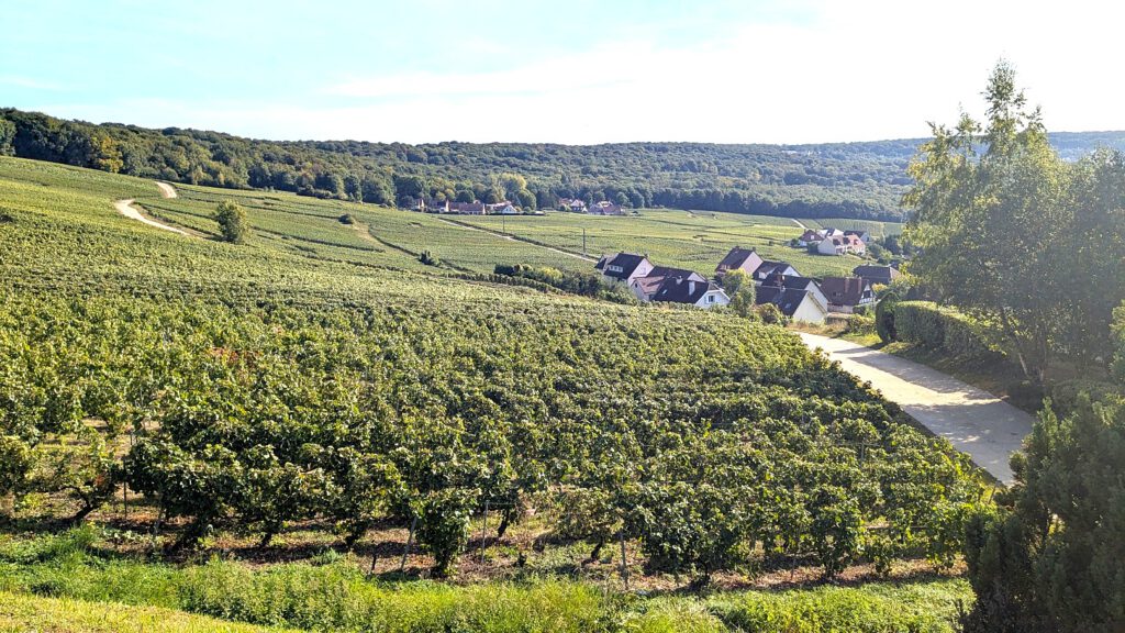 Heute sind wir die schönste der Champagnerrouten angegangen: die Montagne de Reims. Man muss sich diese Hügelkette eher flach vorstellen. Die Marne fließt unten bei Epernay in 68 m Höhe, die höchsten Stellen der Montagne de Reims sind 280 m hoch. Aber 11 von den Gran Crue Lagen (Dörfer) in der Champagne liegen in der Montagne de Reims.