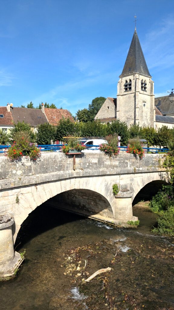 Wir sind im Marnetal westlich bis Château-Thierry gefahren und dann auf der anderen Flussseite wieder ein Stück zurück bis Condé-en-Brie. Ja, der Briekäse hat seinen Namen von dieser Gegend. In Condé-en-Brie sind wir auf den gemeindlichen Stellplatz gefahren und waren dort allein. Das Wetter hatte sich ja heute gemacht und die Sonne schien den ganzen Tag. Wie saßen den Abend noch in der Sonne und genossen den ersten warmen Tag seit einer Woche.