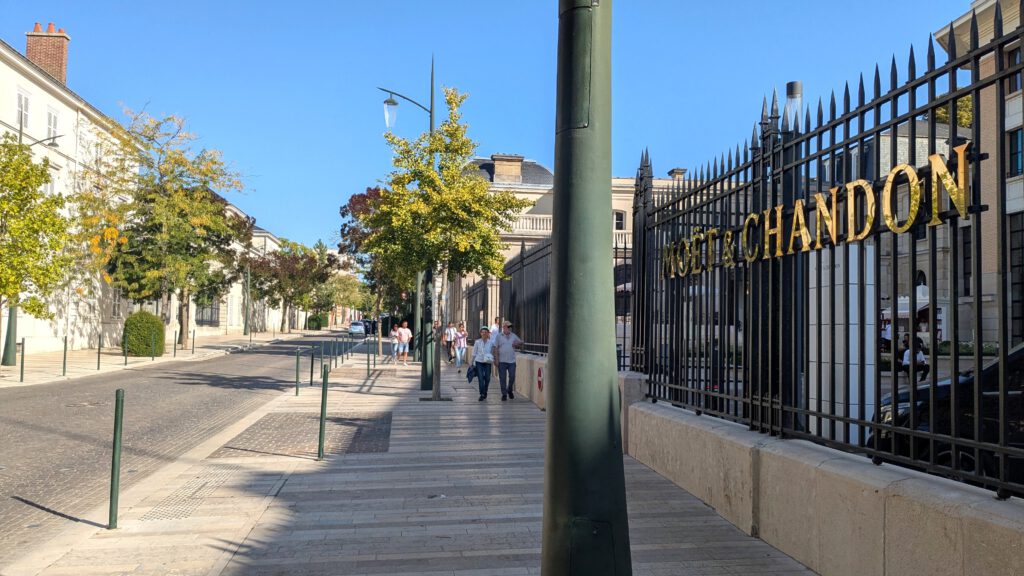 Am Spätnachmittag sind wir mit den Rollern zur Avenue de Champagne gerollert. So 3 km, meist an der Marne entlang. Die Avenue de Champagne wird in unserem Reiseführer als die Schlossallee (Monopoli) Frankreichs beschrieben. Und das ist nicht übertrieben. Auf 900 m sind beidseits palastähnliche Bauwerke vereint, die bekannte und (uns) unbekannte Champagner-Marken beherbergen. Wirklich eine Prachtstraße. Mit unseren Rollern fühlten wir uns zwischen den Porsches und Aston-Martins nicht so wohl. Degustationen bewegen sich für eine Flöte Champagner von den Top-Marken wie Dom Perigon und Moët & Chandon von 20 € bis 12 € für die nicht so bekannten Marken.