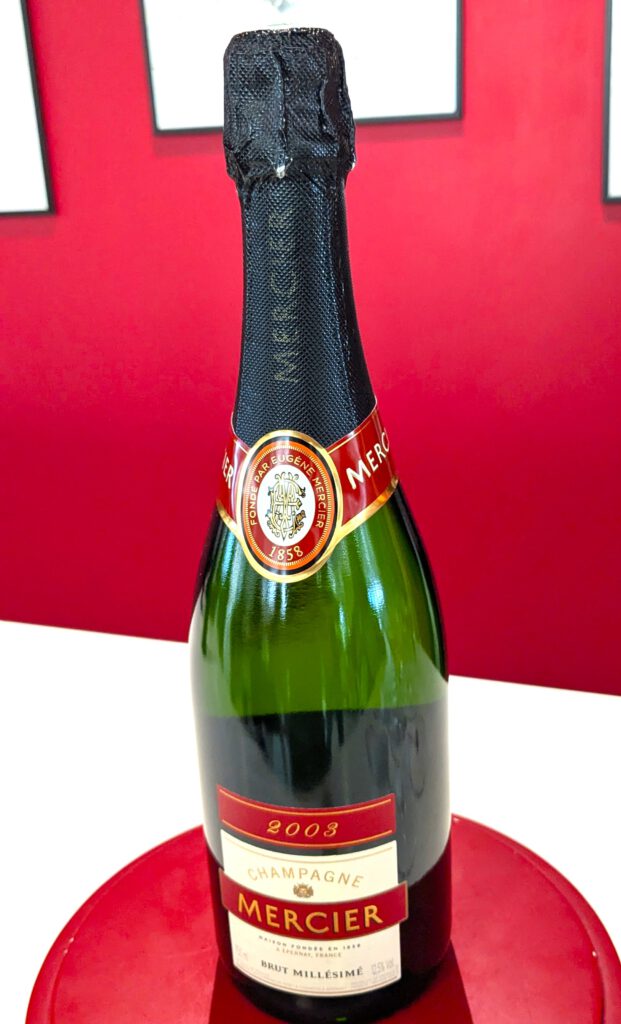 Wir bekamen heute als Abschluss der Besichtigung einen Champagner „Blanc de Noirs – Brut“ und einen „Brut millésimé“ kredenzt. Ersterer ist ein aus roten Pinot-Trauben hergestellter trockener Champagner, der so 3-4 Jahre gereift ist. Der Millésimé ist ebenfalls ein trockener Jahrgangschampagner aus dem Jahr 2003. 2003 war ein sogenannter Jahrhundertsommer. Nicht von jedem Jahr werden Jahrgangschampagner hergestellt.