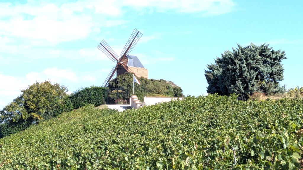 Weiter gings nach Verzenay, wo sich eine alte Windmühle befindet, die schon seit über 100 Jahren stillgelegt ist. Im Ersten Weltkrieg hatte sie, sie liegt auf einem 222m hohen Hügel, eine strategische Funktion als Beobachtungsstelle. Auf der anderen Seite des Dorfes ist der „Leuchtturm“, den sich ein reicher Weinhändler 1909 für Reklamezwecke bauen lies. Strahlte er doch nachts bis ins 10 km entfernte Reims.